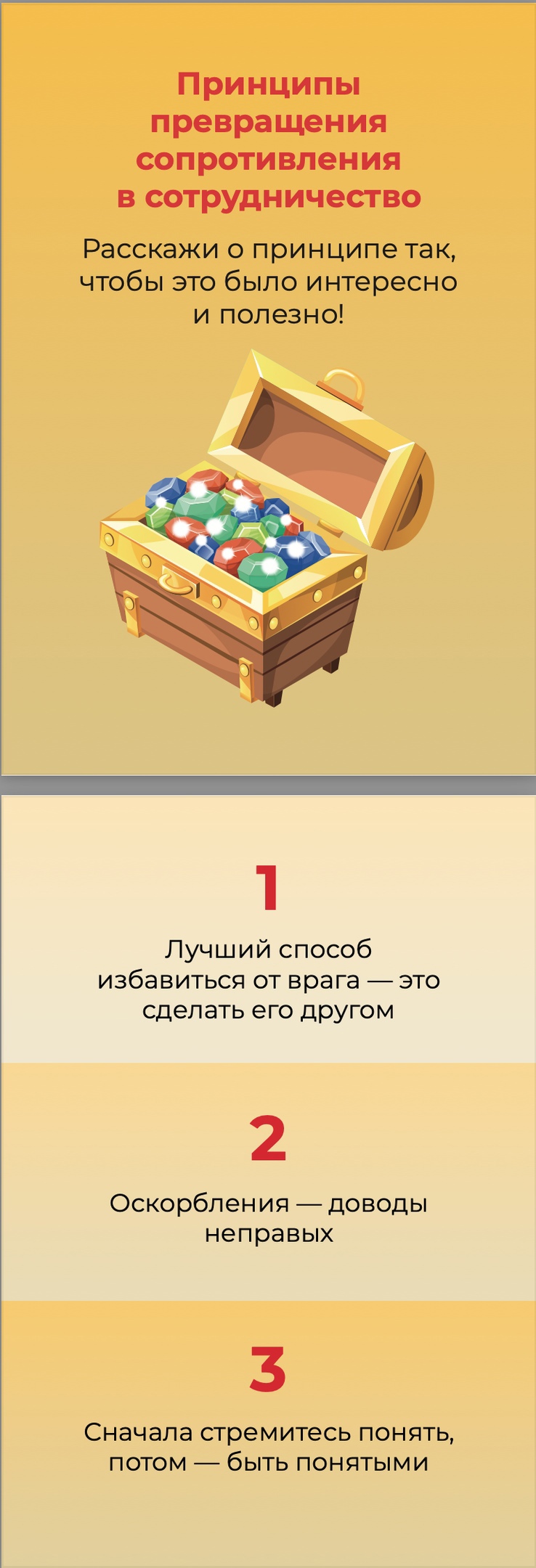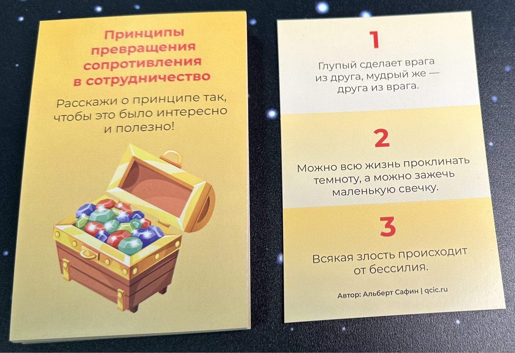 - 25 карт с 75 принципами превращения сопротивления в сотрудничество.