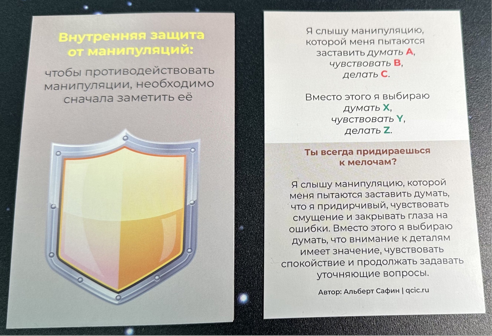 - 5 карт тренировки внутренней свободы от манипуляций;
