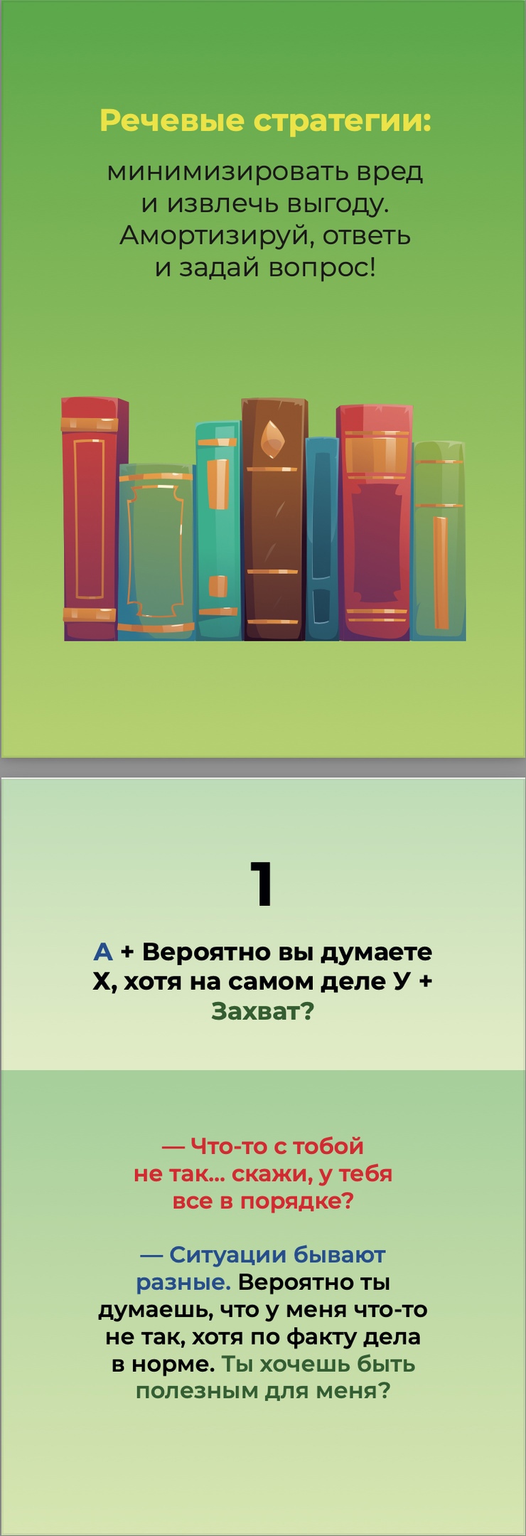 3 - ответ на манипуляцию на базе трех карточек: амортизация, речевая стратегия, захват;