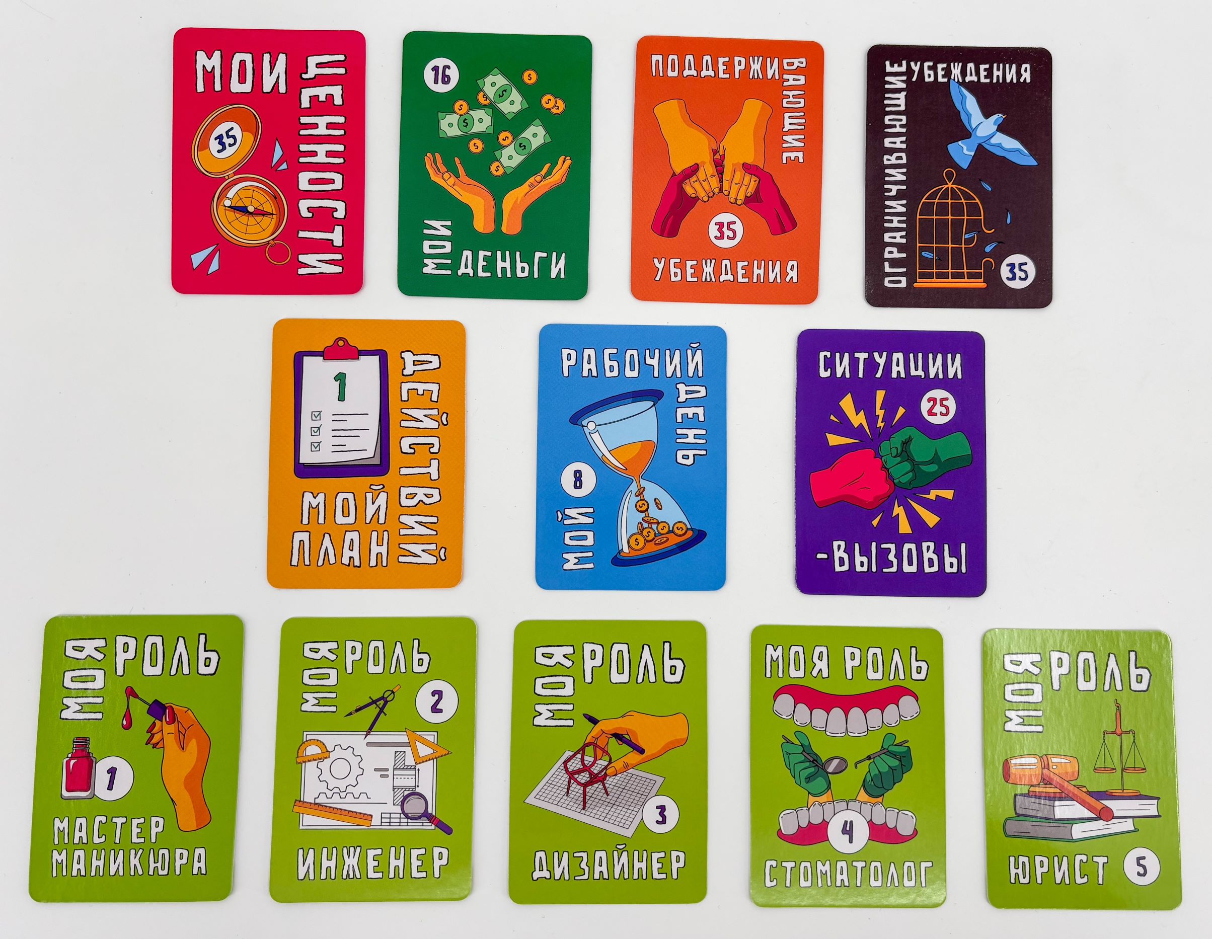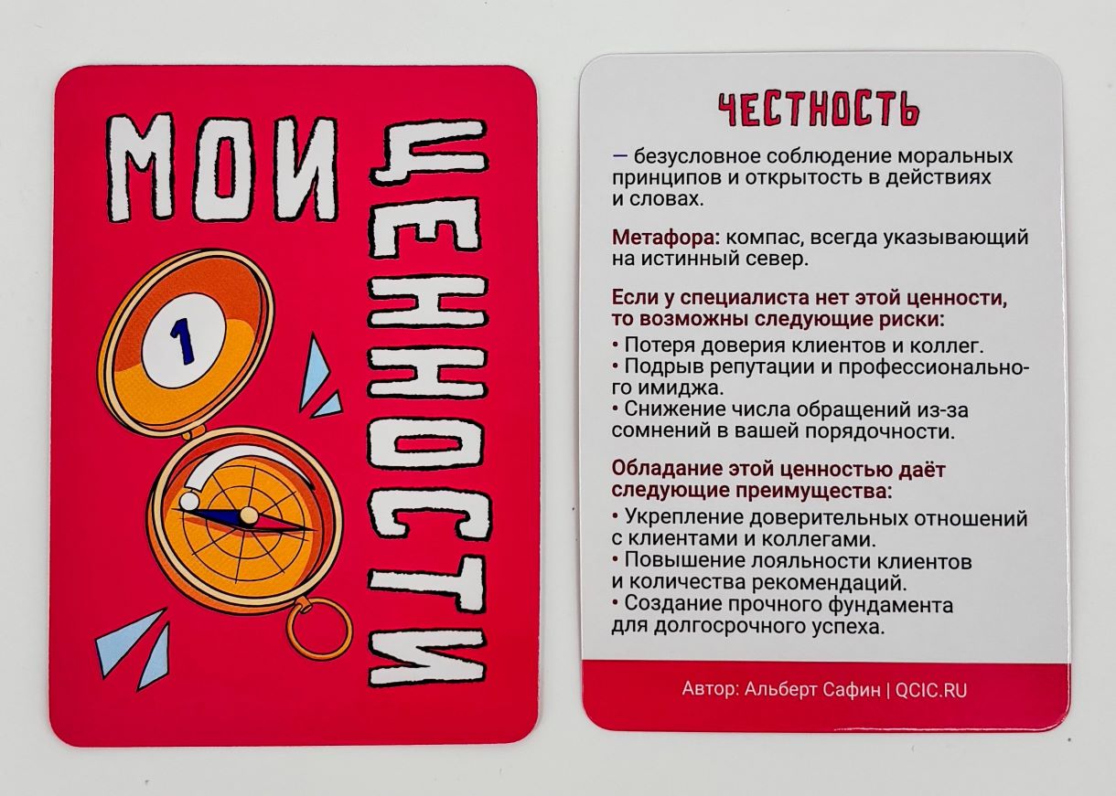2 - Раздача карточек: Предоставьте каждому участнику по 7 случайных карточек с описанием ценностей.